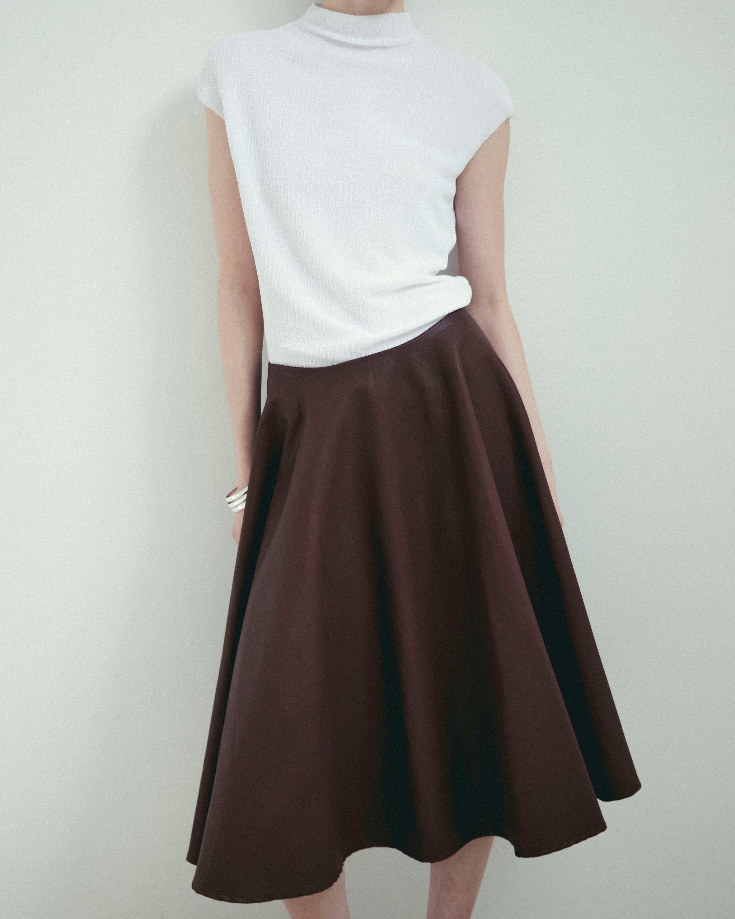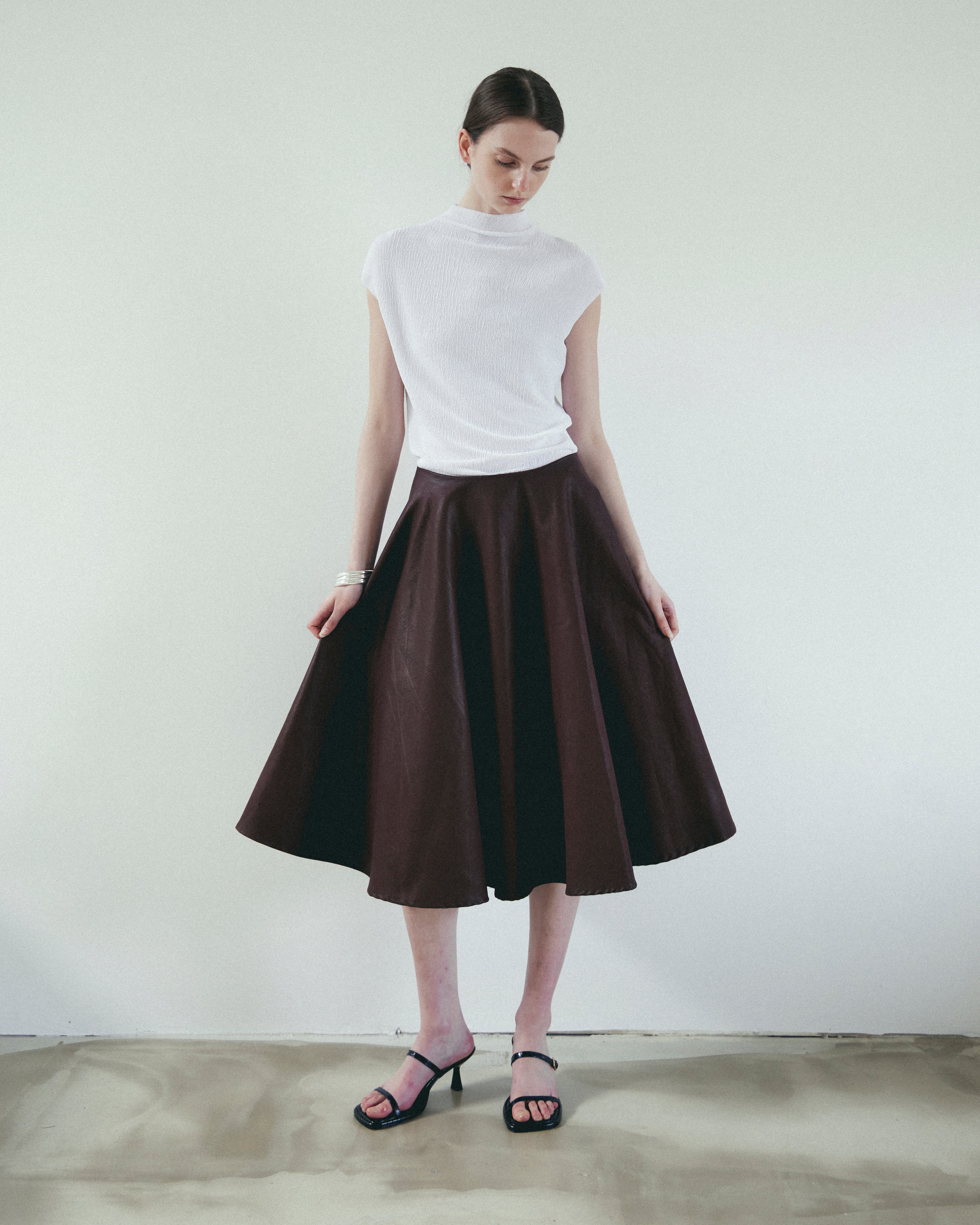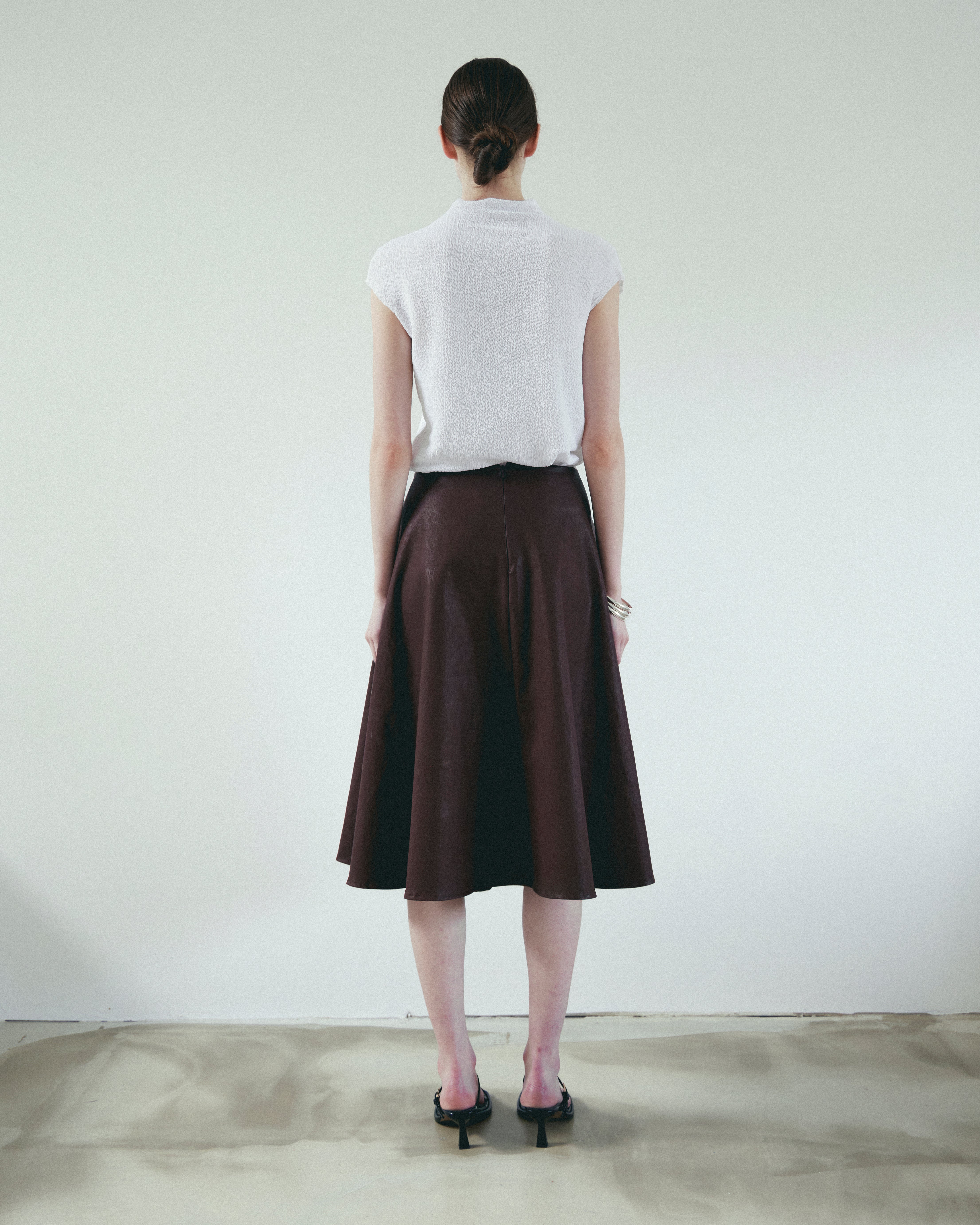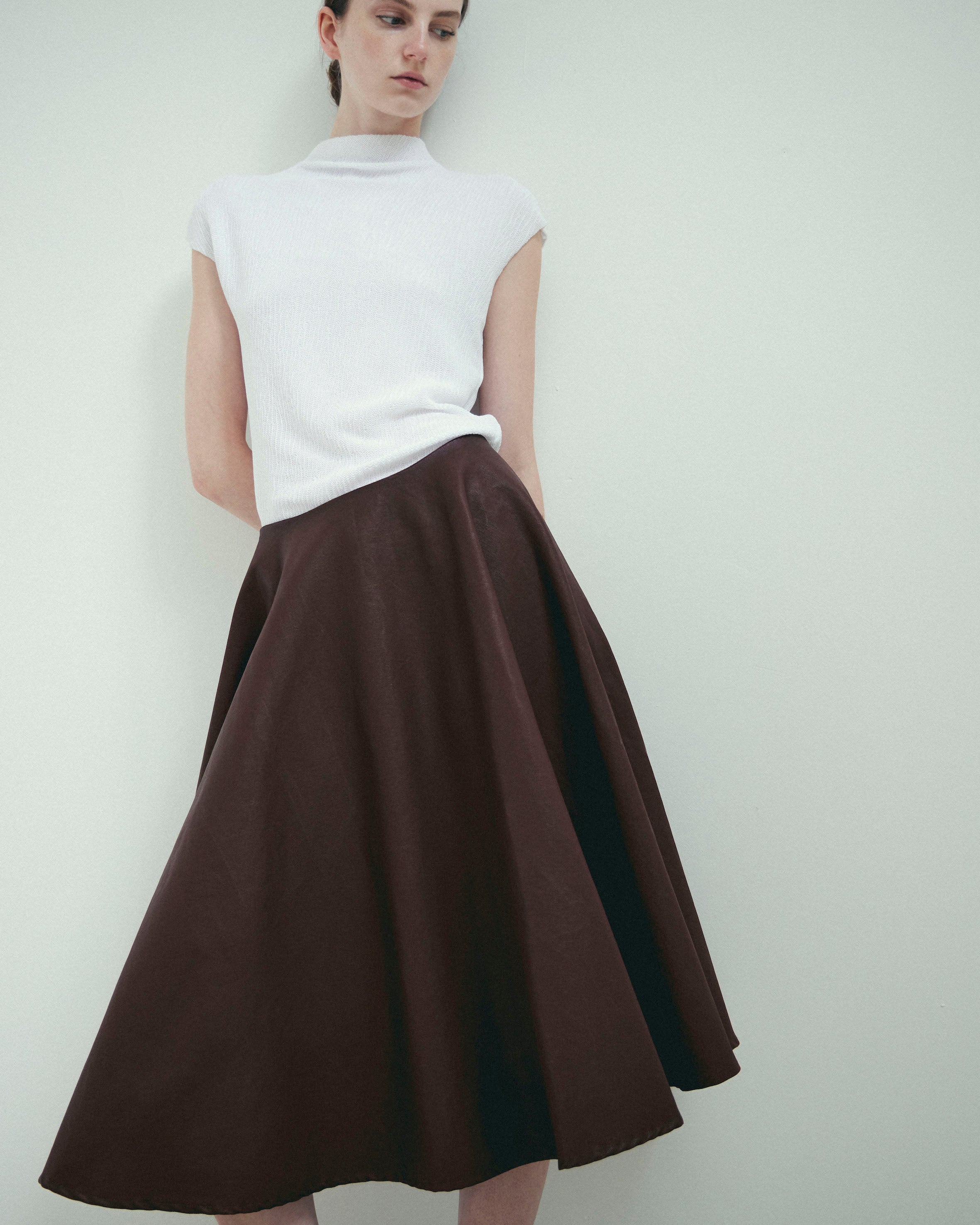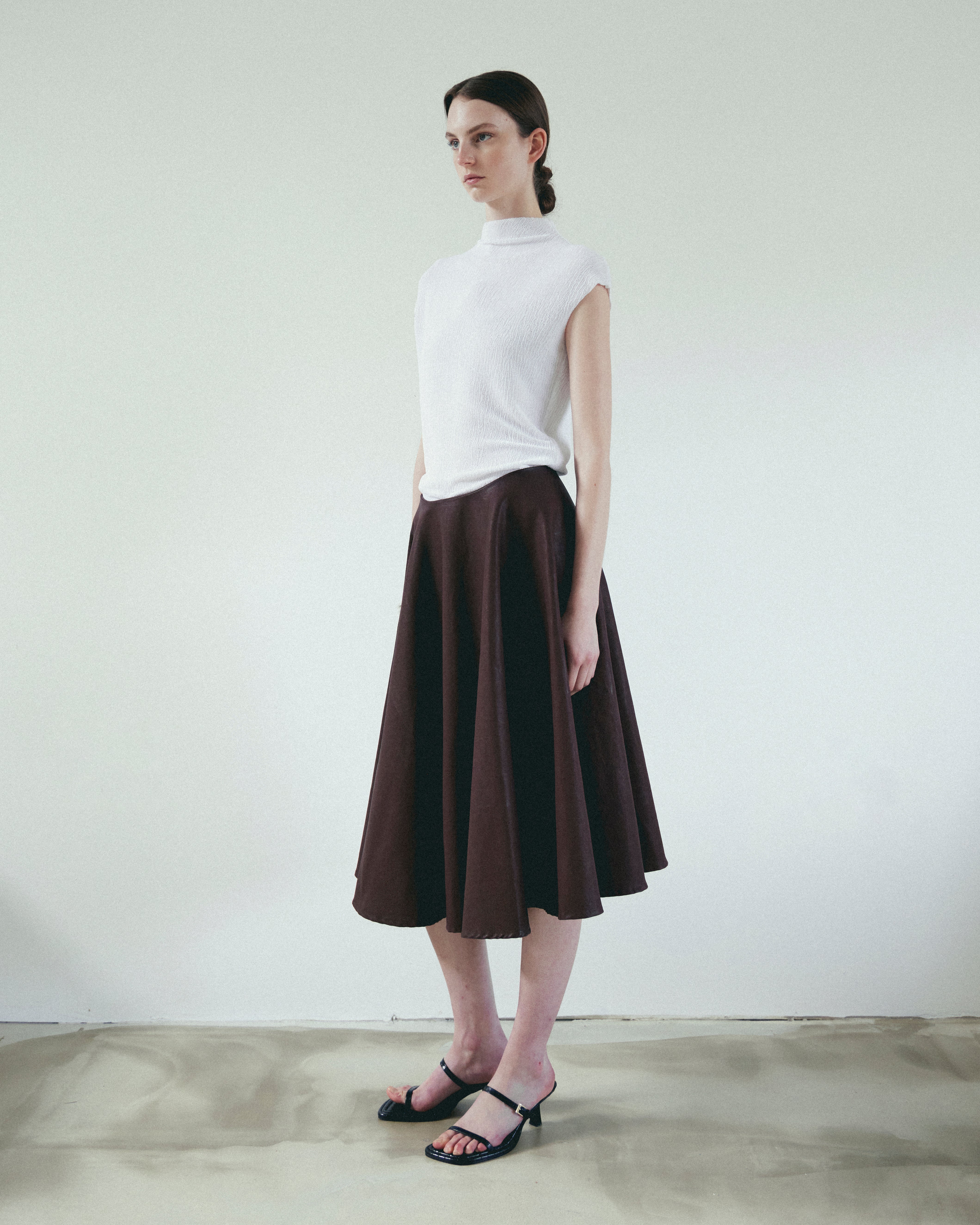 Made from our beautiful waxed denim, the Nocturn Skirt is a knee length circle skirt with a sculptural silhouette. The front is full and voluminous with the back sitting flatter.